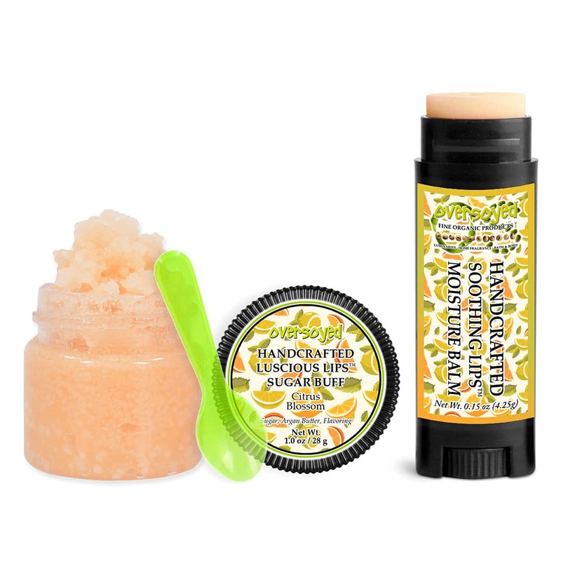 Citrus Blossom Soothing & Luscious Lips by OverSoyed Exfoliator & Chapped Lip Repair Lip Care Combo | Artisan Handcrafted to Order Citrus Lemon Mandarin Floral Jasmine Vanilla Flavored Exfoliating Sugar Lip Scrub & Lip Moisturizer Balm Gift Set