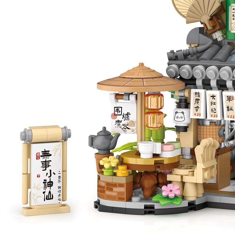 City Tea House Building Blocks Set, Openable Panda Construction Tea Shop Building Toys for Boys Girls Age 8+, 860pcs Mini Bricks (Not Compatible with Lego)