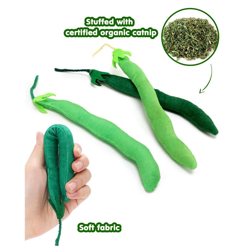 - Funny Cat Toys: Package includes 4pcs green hyacinth bean shape cat kicker toys with organic catnip in them. Your cats will surely love playing with this cute cat kicker toy!