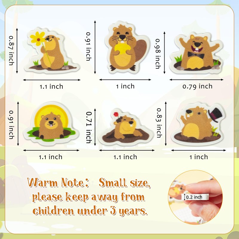 - Warm Note: The size of each novelty groundhog eraser is about 1 x 1 inch, making it easy for children to use. However, to prevent accidental ingestion, please keep them away from children under 3 years old.