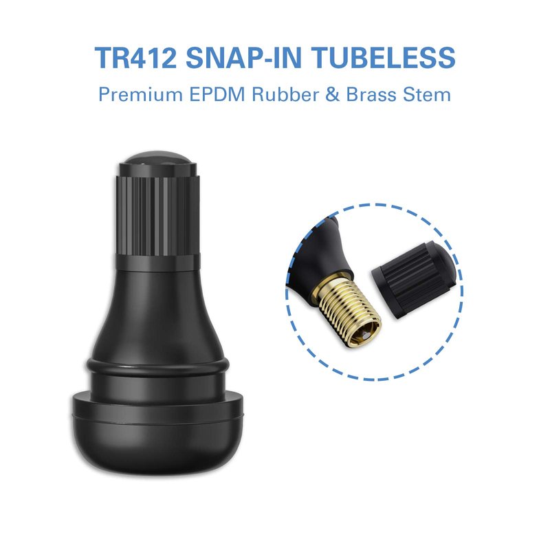 - High Quality: TR412 tire valve stems are constructed of high temperature brass valve cores and ozone resistant EPDM rubber,100% Ozone tested and leak tested
