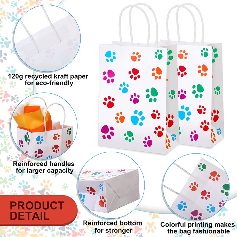 - What will get: the package comes with 24 pieces of party gift bags with paper twist handles, designed with colorful pet paw prints, very suitable for pet party gifts or snacks, suitable size for adults and teens to use