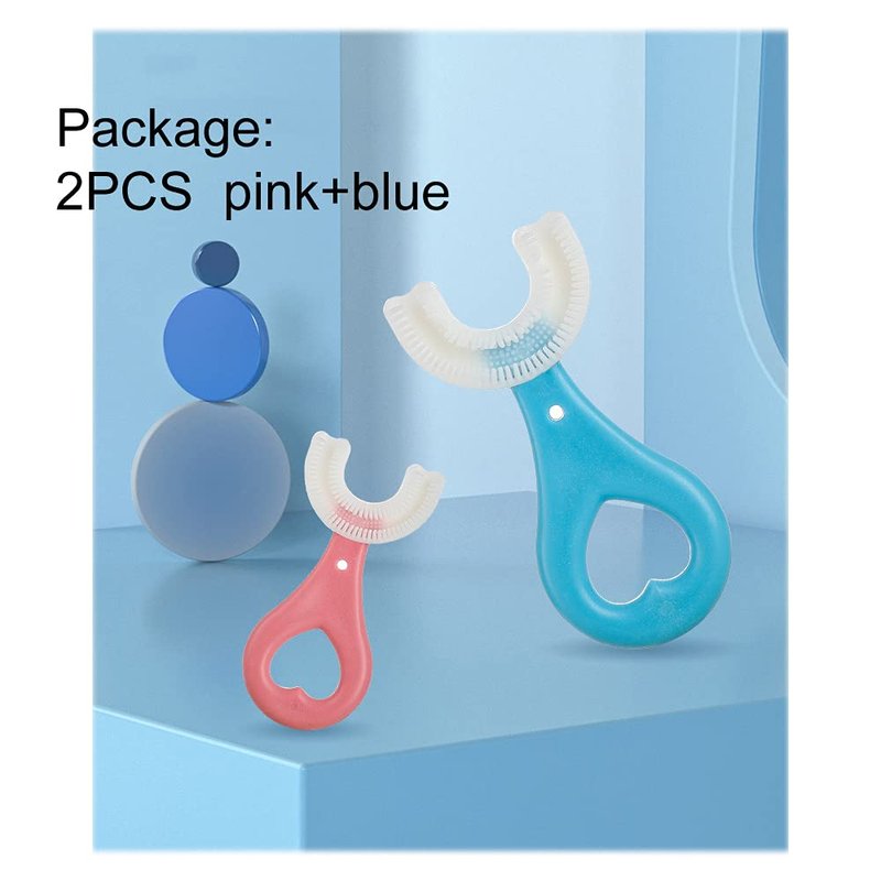 claiol 2 Pcs U-Shaped Kids Toothbrush, Premium Soft Manual Training Toothbrush for Kids 2-6 Years Old. (Blue+Pink)