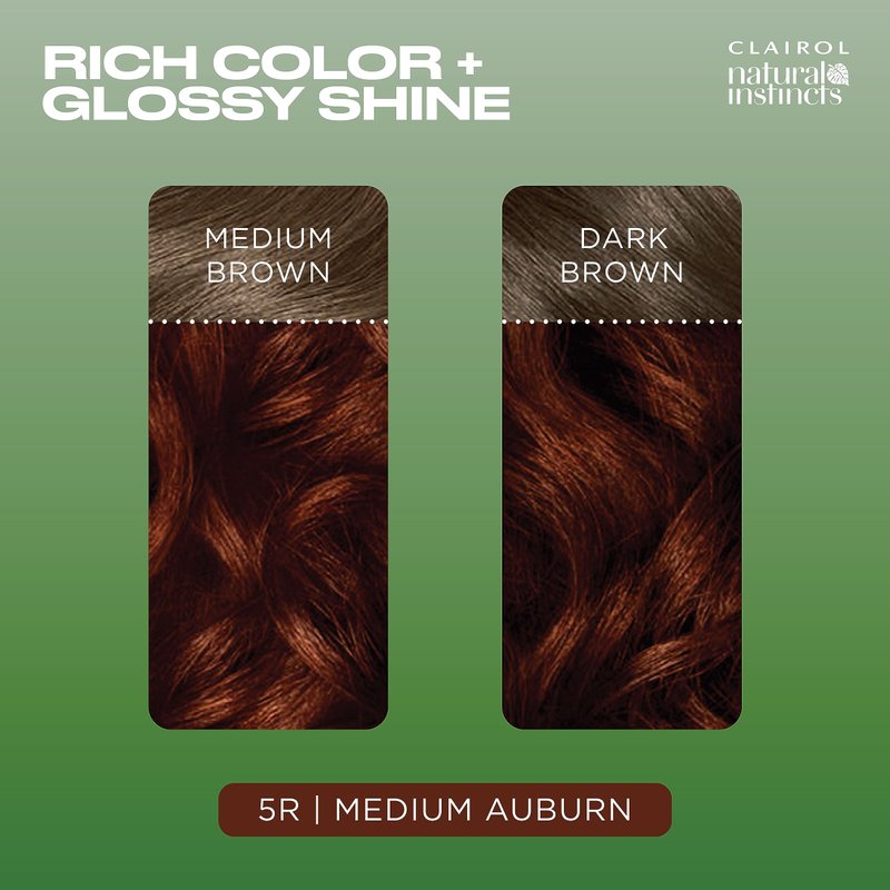 Clairol Natural Instincts Demi-Permanent Hair Dye, 5R Medium Auburn Hair Color, Pack of 1