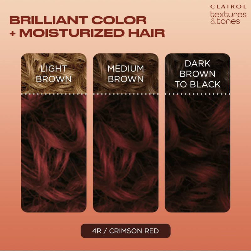 Clairol Textures & Tones Permanent Hair Dye, 4R Crimson Red Hair Color, Pack of 1