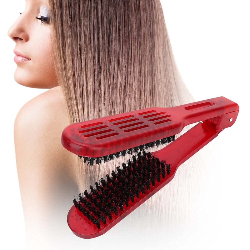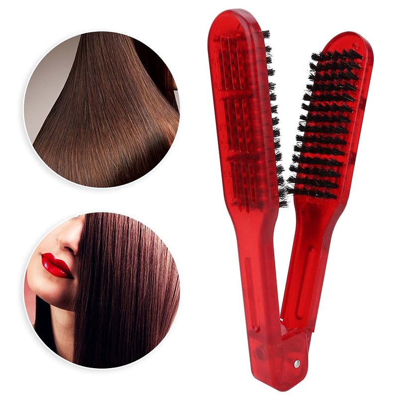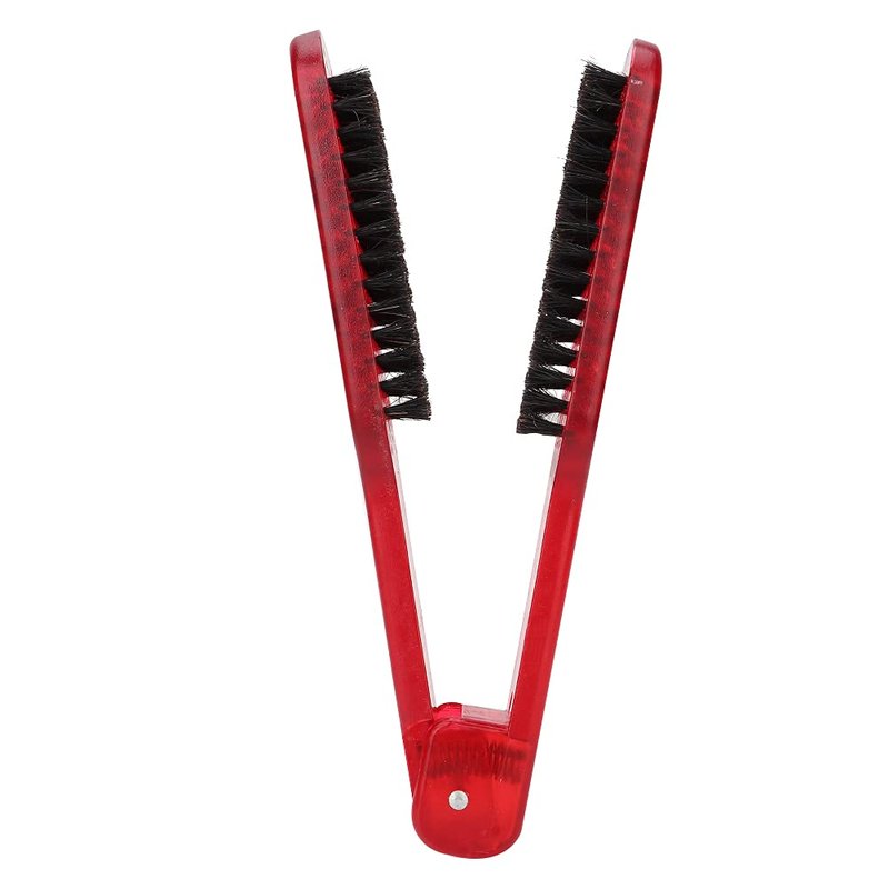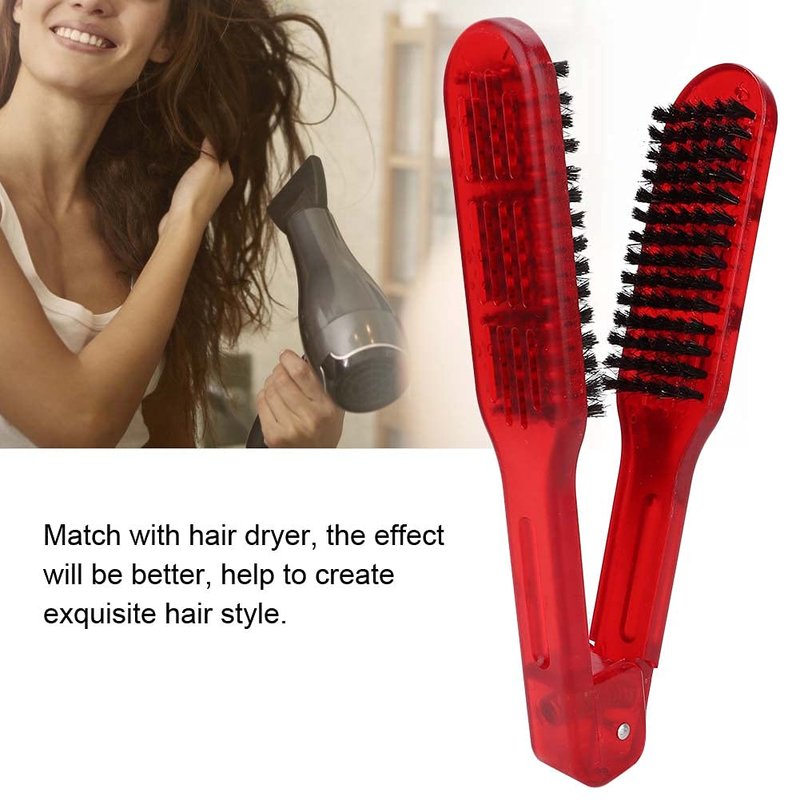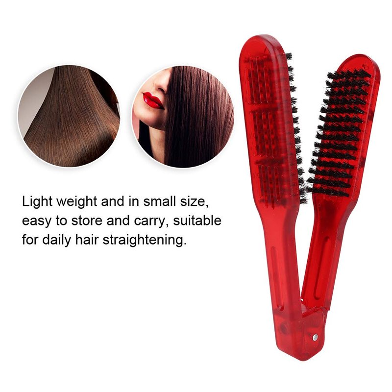 Clamp V-Shaped Hair Straightening Brush - Double-Sided Anti-Static Styling Comb for Hairstyling - Hairdressing Tool for Women, Men, Home and Barber Shop (Red)