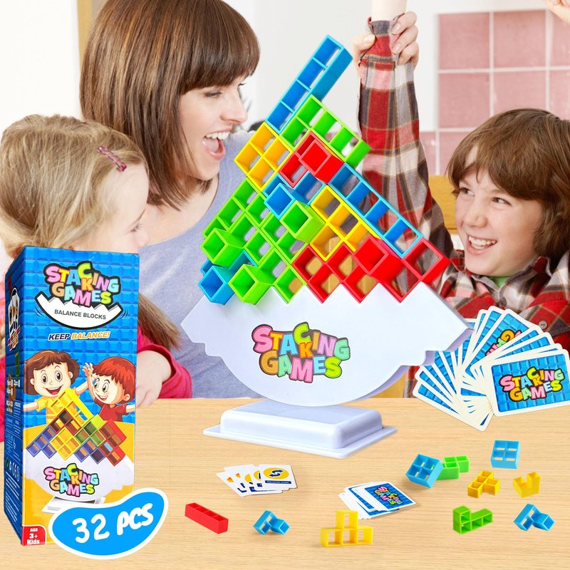 32 Pcs Tetra Tower Stacking Game, Fun Balance Building Blocks Board Games for Kids Adults Family Party, Toys Gifts for Boys Girls Ages 3-12