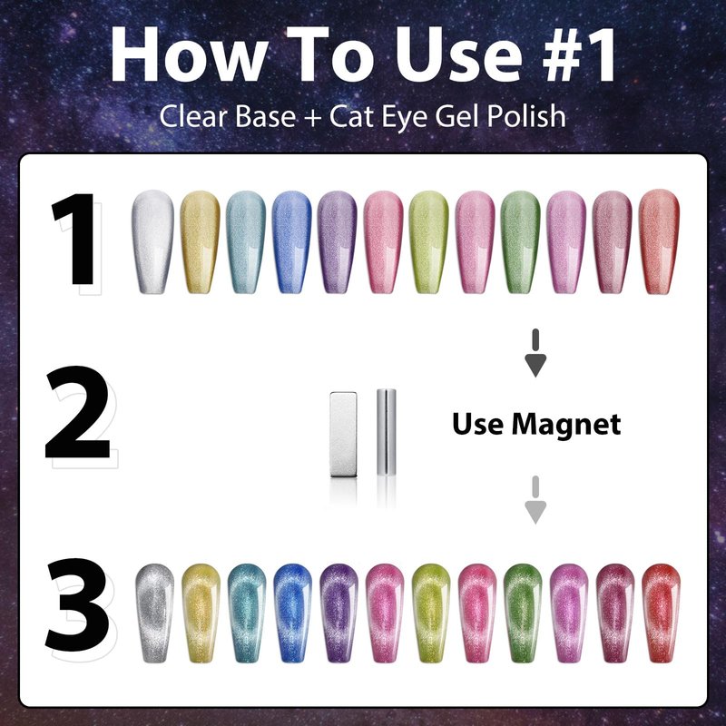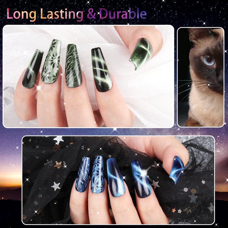 - Having innovative formula of our cat eye gel nail polish set, you can wear glossy nails longer (up to three weeks or more). You would get to enjoy your favorite color on your nails for a few days.