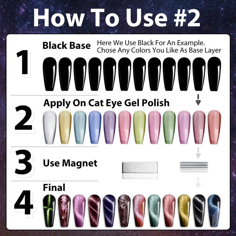 - The cat eye gel polish with a flat magnet, it would definitely help you to create the classic cat eye line and more innovative nail art designs. Perfect DIY at Home & Salon. Ideal gifts for friends who love doing nails.