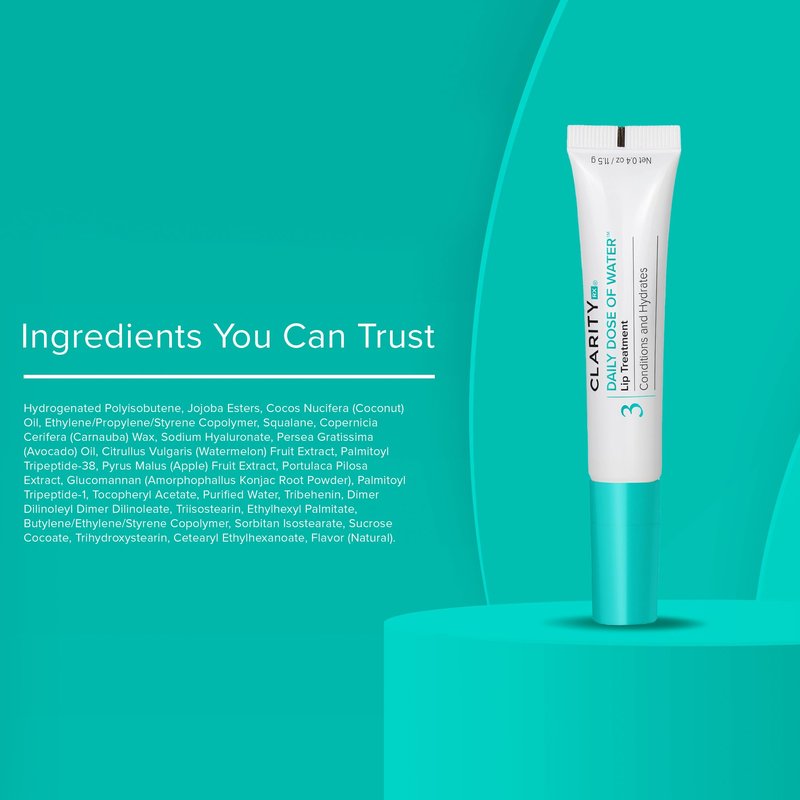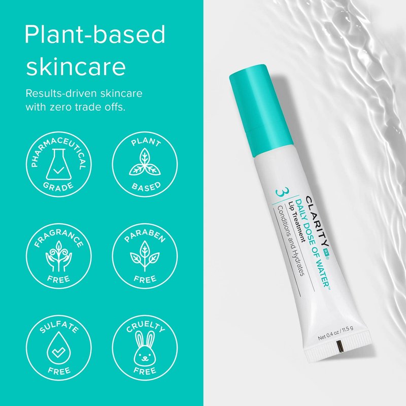 ClarityRx Daily Dose of Water Lip Treatment, Natural Plant-Based Lip Plumping Treatment with Hyaluronic Acid for Dry, Chapped Lips (0.4 oz)
