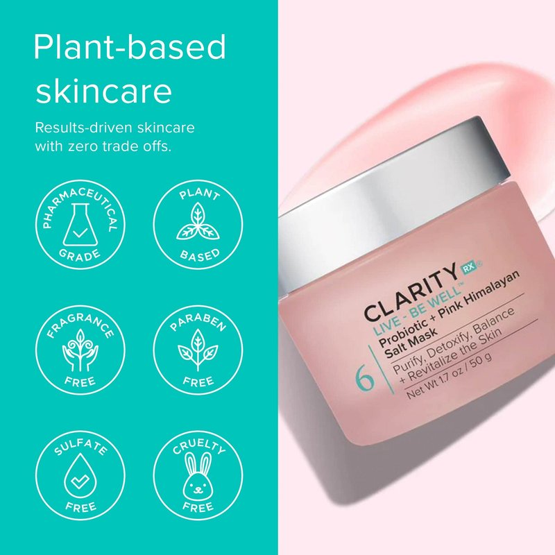 ClarityRx Live + Be Well Probiotic + Pink Himalayan Salt Face Mask, Natural Plant-Based Moisturizing Facial Treatment for All Skin Types, Reduces Redness, Acne & Signs of Aging (1.7 oz)