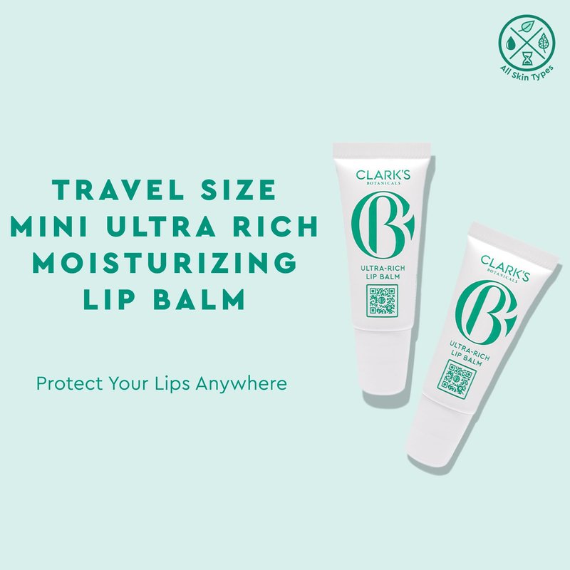 Clark's Botanicals Travel Size Mini Ultra Rich Lip Balm: Plumping Moisturizer with Collagen and Shea, Mango & Avocado Butter + Vitamin E, Stimulating Organic Lip Treatment | 0.14 fl oz (Pack of 2)
