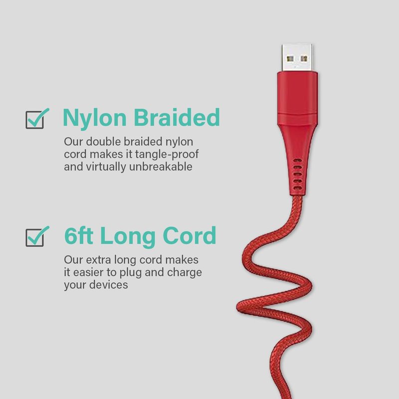 - 6 FT Length: This cable is available in multiple colors, so you can choose the one that best suits your style. It is also 6 feet long, which gives you plenty of reach to charge your phone from anywhere in the room.