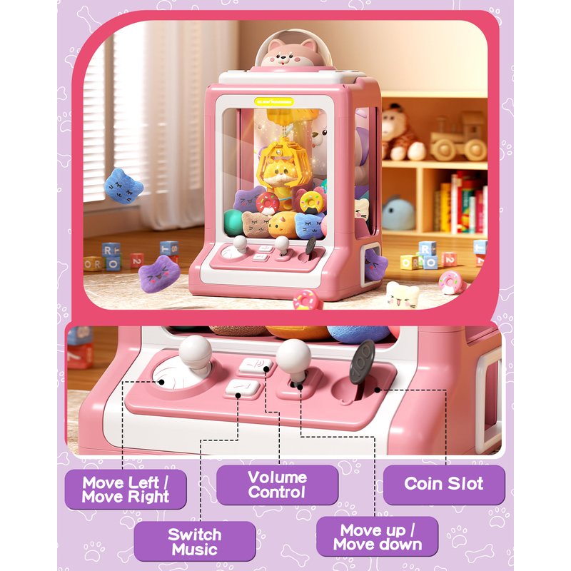- 【Easy to Use & Adjustable to Silent】In addition to music, sound and volume control, our claw is flexible and powerful, can rotate 360 degrees and easily select prizes, providing countless hours of entertainment for children.