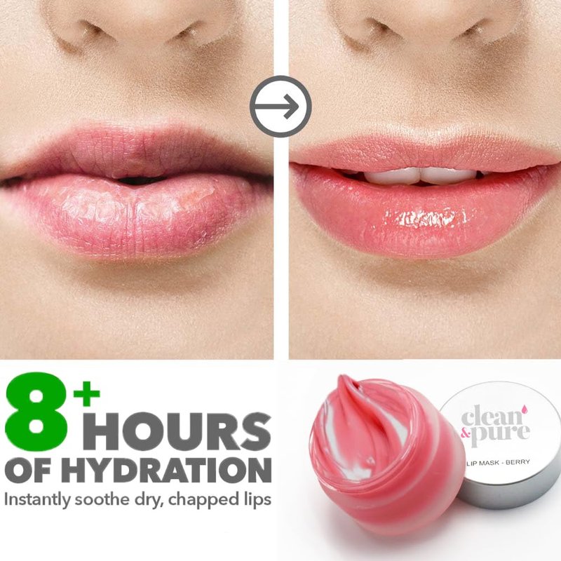 - 💋 Hydrating Lip Mask: Are your lips feeling dry and cracked? And you are seeking a nourishing solution to combat dry and damaged lips? Fret no more! Our berry flavored lip mask by Clean & Pure is designed to provide your lips with the ultimate care and rejuvenation, offering an infusion of intense moisture to quench even the thirstiest lips.