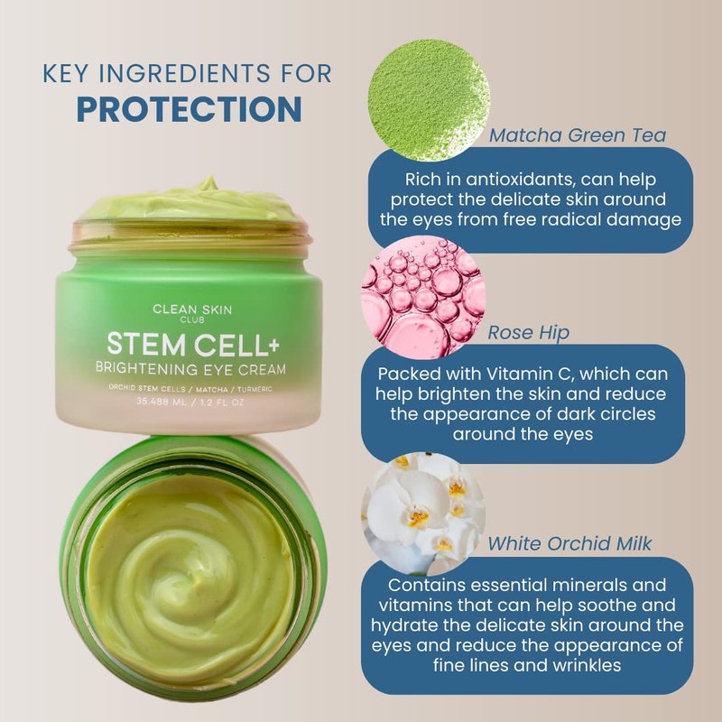 CLEAN SKIN CLUB Brightening Stem Cell+ Eye Cream - Reduces Dark Circles, Puffiness, Wrinkles - Improves Collagen & Elasticity - Hydrating Formula for Youthful Skin