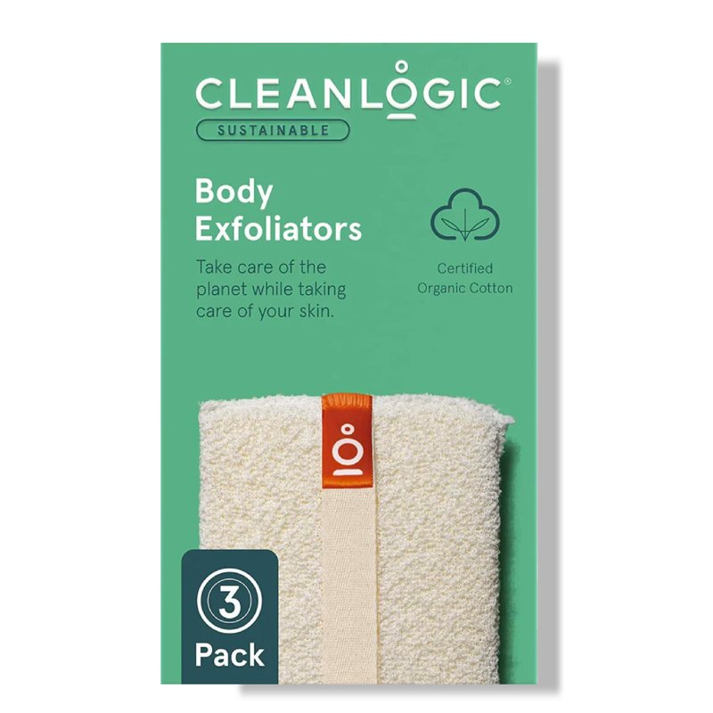 Cleanlogic Organic Cotton Exfoliating Body Scrubber, Reusable Exfoliator Tool for Smooth and Softer Skin, Daily Skincare Routine, Natural, 3 Count Value Pack