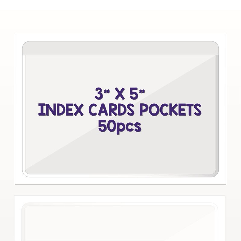 - Value Pack: This pack includes 50 Pcs 3-5/8” x 5-1/4” adhesive index card pockets with a top opening for easy and convenient loading, guaranteed to fit 3x5 inch index cards.