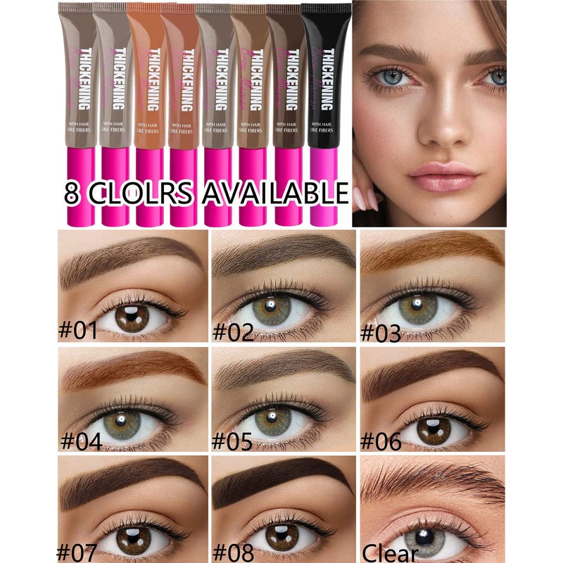 - THICKENING TINTED BROW GEL KIT - You will get 1Pcs thickening eyebrow gel,1Pcs clear setting brow gel,1 brow razor and 1 eyebrow brush. The thickening tinted brow gel contains high-quality man-made fiber. Tint, thicken and stereotype all types of eyebrows with a natural finish that lasts up to 16 hours with this set tinted brow mascara in 8 high-impact inclusive shades.