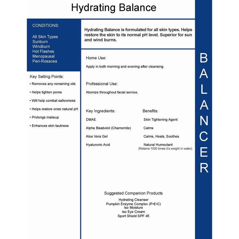 - Hydrating Balance is formulated for all skin types. Helps restore and normalize skin's pH.