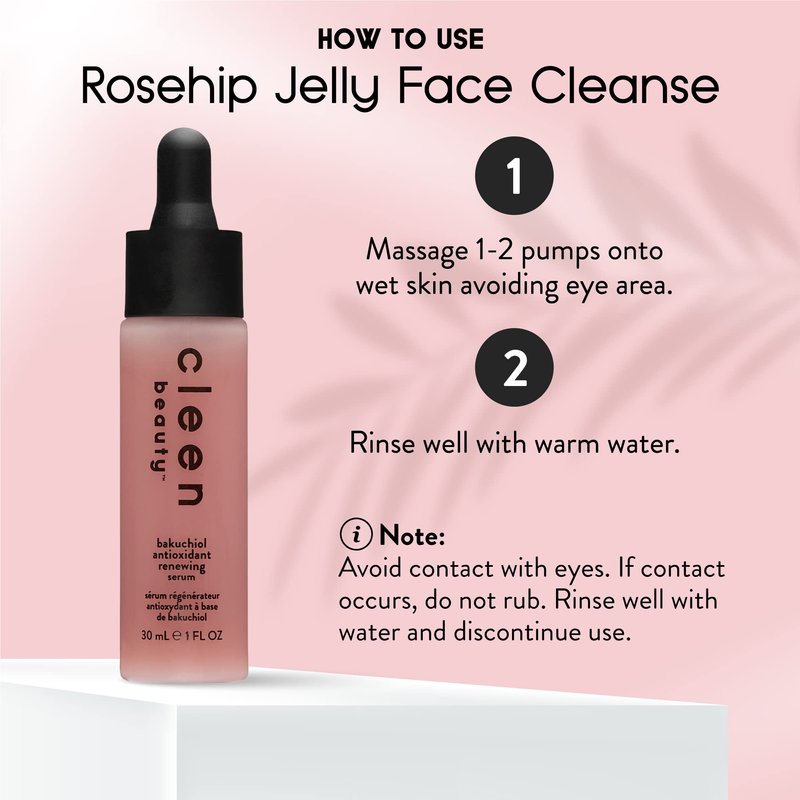 Cleen Beauty Cleanse and Skin Care Set | Daily Regimen | Rosehip Jelly Face Cleanser + Bakuchiol Antioxidant Renewing Serum | Anti-Aging Serum | Hydrate Gentle Face Wash