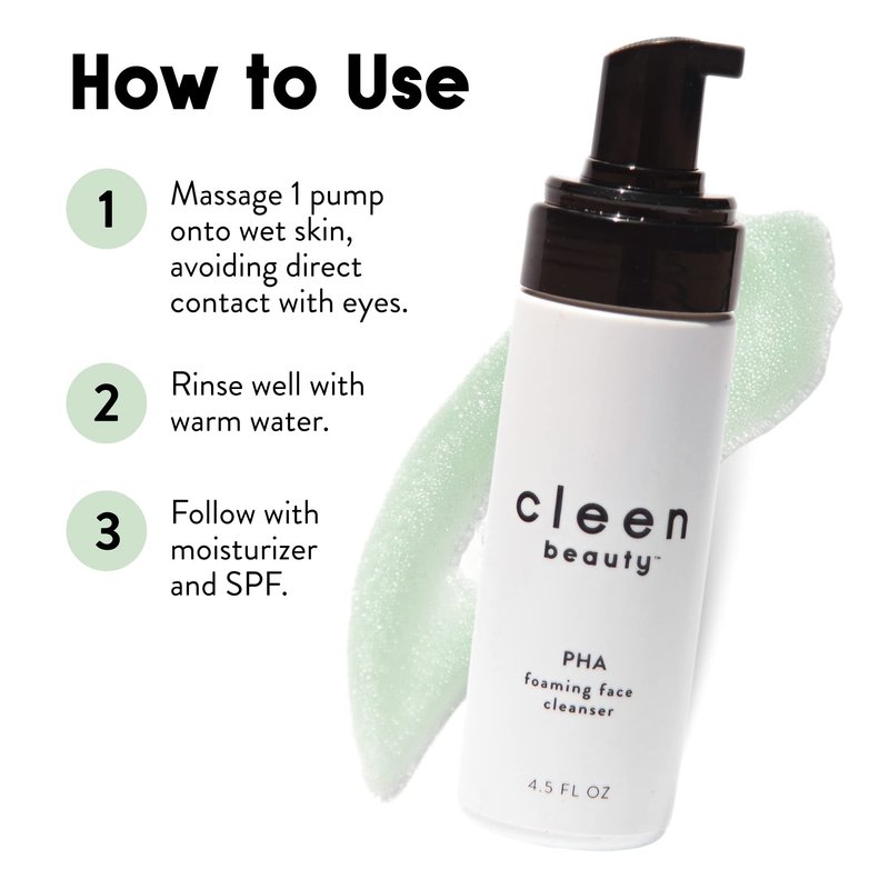 - Foaming Face Wash - The luscious Cleen Beauty PHA Foaming Face Cleanser is formulated with a combination of exfoliating and nourishing ingredients to cleanse and condition the skin. It is formulated with PHA, which is a gentle acid that exfoliates the skin by removing dead skin and impurities.