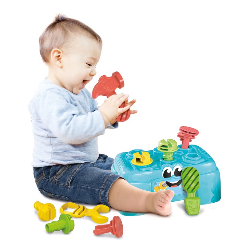 Clementoni- Baby Work Bench - Hammer, Screwdriver, Pliers & 6 Accessories for Hand-Eye Coordination & Manual Skills (10+ Months)