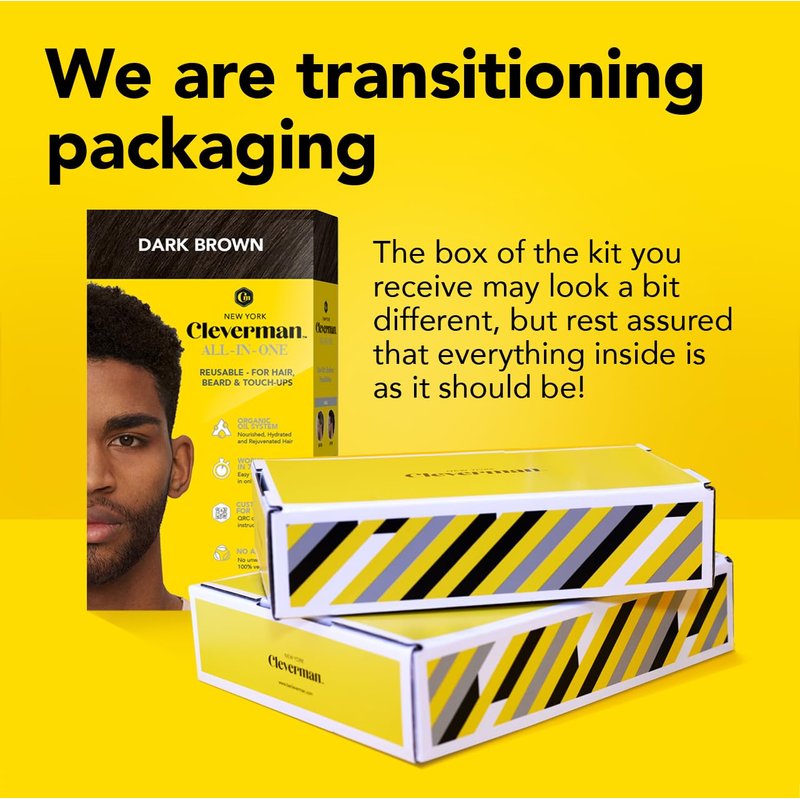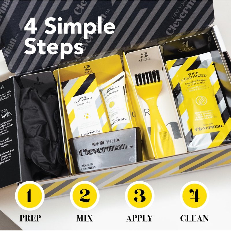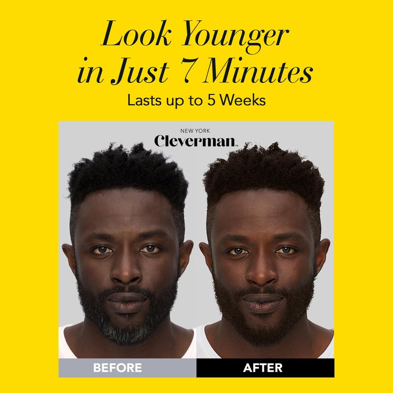 Cleverman Beard Hair Dye for Men: The ultimate all-in-one solution for achieving natural-looking gray coverage with professional-quality results. Crafted by men, for men our complete hair color kit is designed to cover gray in your hair, beard, mustache, and even for touch-ups. With an average of 4 applications per kit, you can maintain your look effortlessly and effectively. Get fast results in just 7 minutes with our easy-to-use, mess-free cream color. Cleverman hair dye color delivers long-lasting coverage that lasts up to 5 weeks, helping you rewind the clock and look your best. Includes high quality gloves for precise application, developer cream, mixer tray and spatula, precise hair dye brush and post color cleanser. With the included hair dye applicator, apply in 4 steps: prep, mix, apply, and clean. Perform a skin test 48 hours before use. Enhanced with QRC-Technology, our hair coloring system customizes your technique and timing, offering tips for the most personalized and best-looking results. Our vegan beard coloring for men is free from ammonia, resorcinol, and silicones. Enriched with a triple organic oil system, our dye, developer, and shampoo nourish and protect your hair, skin and scalp while providing rich, lasting color. Cleverman's men's hair dye is designed to be gentle, but if you've experienced allergic reactions to hair dyes or have very sensitive skin, proceed with caution. Available in 8 colors, Cleverman offers a variety of shades to suit your style and preference.