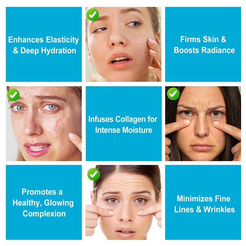 Firming and Lifting: Collagen helps enhance skin firmness, reducing fine lines and wrinkles, leaving your skin firmer and more elastic.