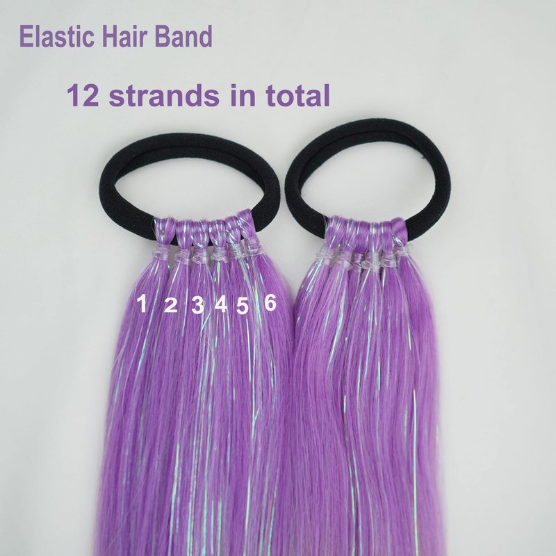 Hair Type:Colorful braiding hair extensions with elastic hair tie.