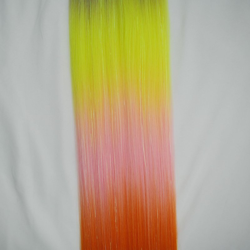 Cute 28 inch synthetic colored hair extensions with hair tinsel are lightweight, full volume.They won't run, fade, or harm natural hair.