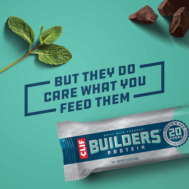 CLIF BUILDERS - Protein Bars - Chocolate Mint - 20g Protein - Gluten Free (2.4 Ounce, 12 Count)