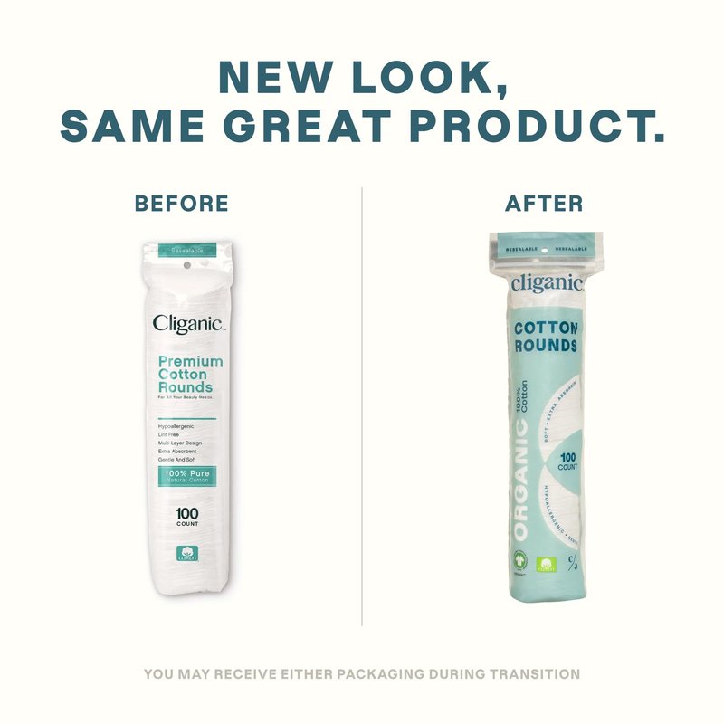Cliganic Organic Cotton Rounds (300 Count) Makeup Remover Pads, Hypoallergenic, Lint-Free | 100% Pure Cotton (Packaging May Vary)
