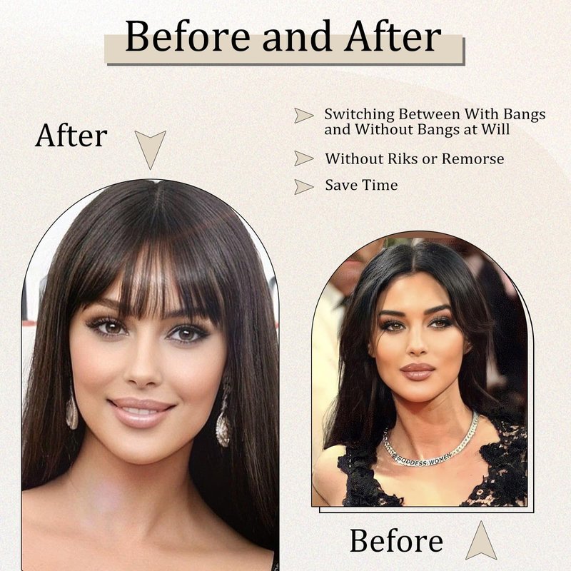 Clip in Bangs 100% Human Hair Fake Bangs Clip in Hair Extensions Light Brown Air Bangs Fringe With Temples Hairpieces for Women Curved Bangs for Daily Wear