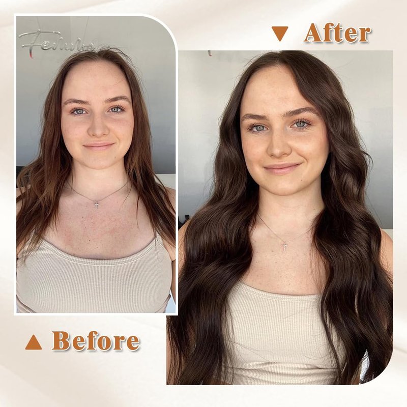 - ★Human Hair Clip in Extensions Advantage:Our clip in hair extensions is no glue, no damage to scalp and hair,can be dyed to matched your color, can be curled to gorgeous hairstyle,You can easily to wear and remove the clip on hair extensions by yourself to change hairstyle for different occasions.