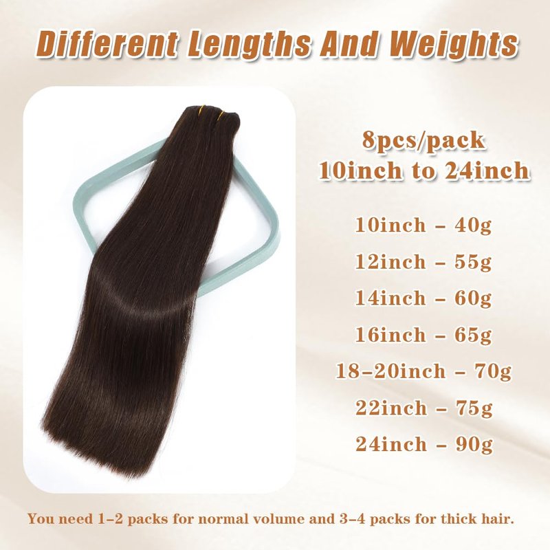 - ★Clip in Hair Extensions Specification & Color: 8pcs 65g-110g(with clip),use1packs for fine hair,2 packs if you like heavy volume,easy installation and removal.Uses the color closest to the hair color.May very slightly from colors shown due to lighting, monitors, and setting.