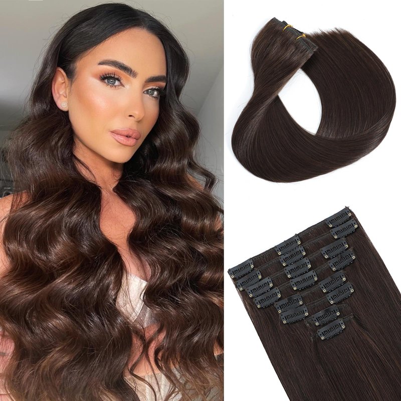 Clip in Hair Extensions Human Hair Double Weft Handmade Real Human Hair Extensions 8pcs 70g 100% Brazilian Virgin Human Hair for Women(#2 Dark Brown,18inch)