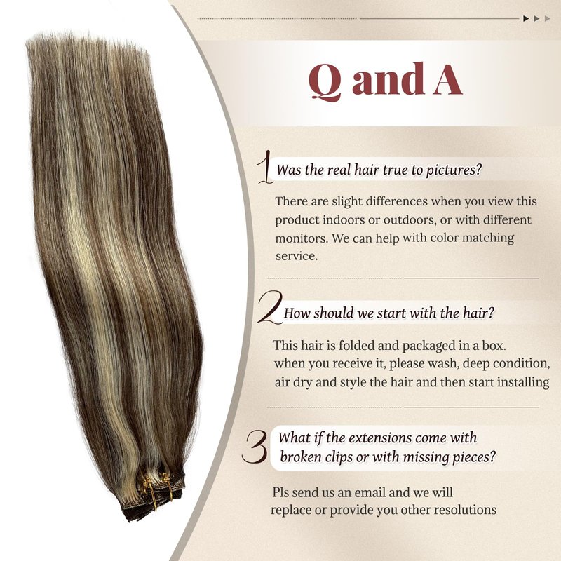 - {About Hair Color}: the product images for the color #4/613 you see now have been updated, so "frequently returned item" shows on the page can be ignored; we promise the color difference between the images and the real product becomes smaller and almost non-existent; please feel free to place your order and this color blends perfect for medium brown with blonde highlights hair; not sure if this is your perfect match, please feel free to contact us