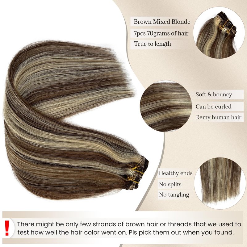 - {Clip in Hair Extensions Specifications}: this remy hair clip in extensions has 4 different lengths with many luscious colors; you will get 7(seven) pieces of different width weft hair, 70grams with 16 clips in total; 1 piece with 4 clips, 2 pieces with 3 clips, 2 pieces with 2 clips and 2 pieces with 1 clip; one or two sets for thin/fine hair, three or more for thickness and highlights
