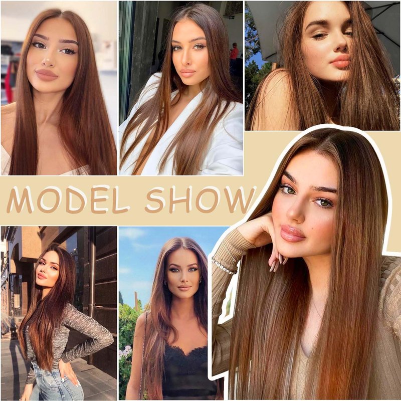 - 【Easy to Wear or Remove】Compared to traditional hair extensions,No tape,No glue, our hair extension only uses BB clips to fix. Clips are lightweight but strong,sewn with quality clips, don't fall out easily,secure &comfortable to wear.Just spend 5 minutes wearing these hair pieces,clip hair extensions is easy and quick for adding volume and length,then a charming and elegant look will appear.