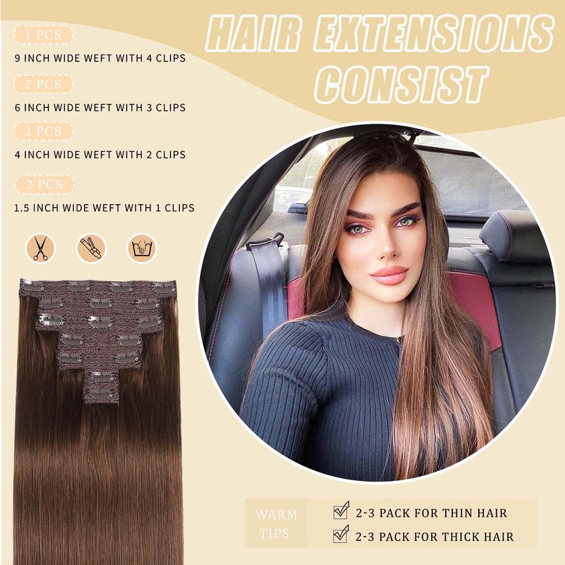 Clip in Hair Extensions,22 Inch Straight Human Hair Clip in Extensions Seamless Straight Hair Extensions Thick Long Synthetic Hairpieces For Women Natural Hair (Medium Brown)