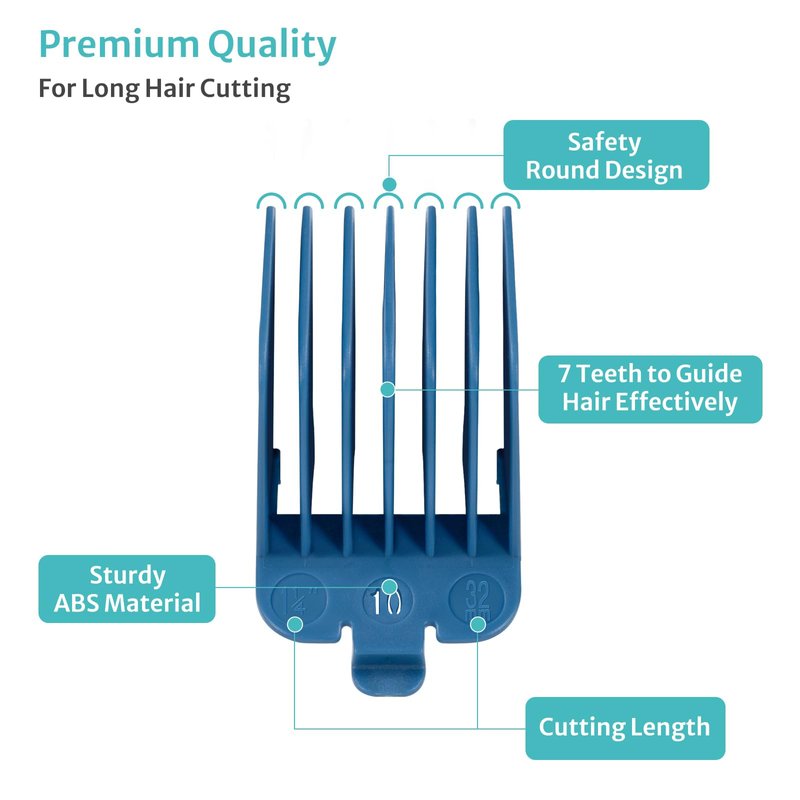 - Color Coded: Each guard features a unique color and cutting length for quick identification.