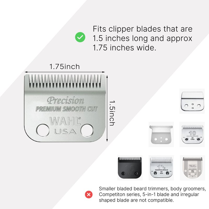 - Compatible Model: Fits 1-5/8" to 1-3/4" Wide Blades. Please view all listing images for sizes, details, benefits chart, compatible models. (Full size hair clippers, not smaller beard trimmers, body groomers, etc.)