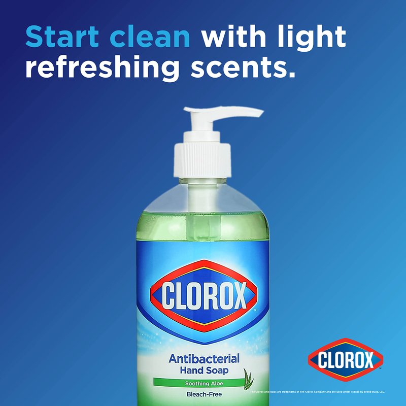 - ANTIBACTERIAL HAND SOAP KILLS 9999% OF GERMS - Feel good about getting clean with Clorox antibacterial soap! Easily eliminate germs and dirt The only thing left behind is the fresh aloe scent, making it perfect as bathroom hand soap or hand soap for kitchen
