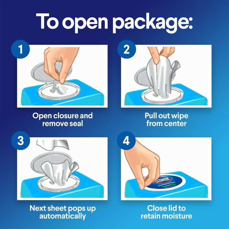- EASY PULL PACK: New easy to pull flip top pack allows for the easiest way to clean and disinfect: open with one hand dispenses one wipe at a time