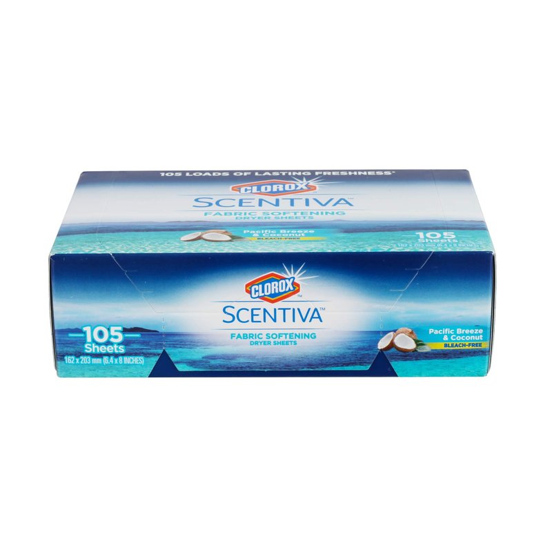 Clorox Scentiva Fabric Softening Dryer Sheets | Fabric Sheets in Pacific Breeze & Coconut Scent | Laundry Dryer Sheets for Fresh & Clean Clothes | 105 Count