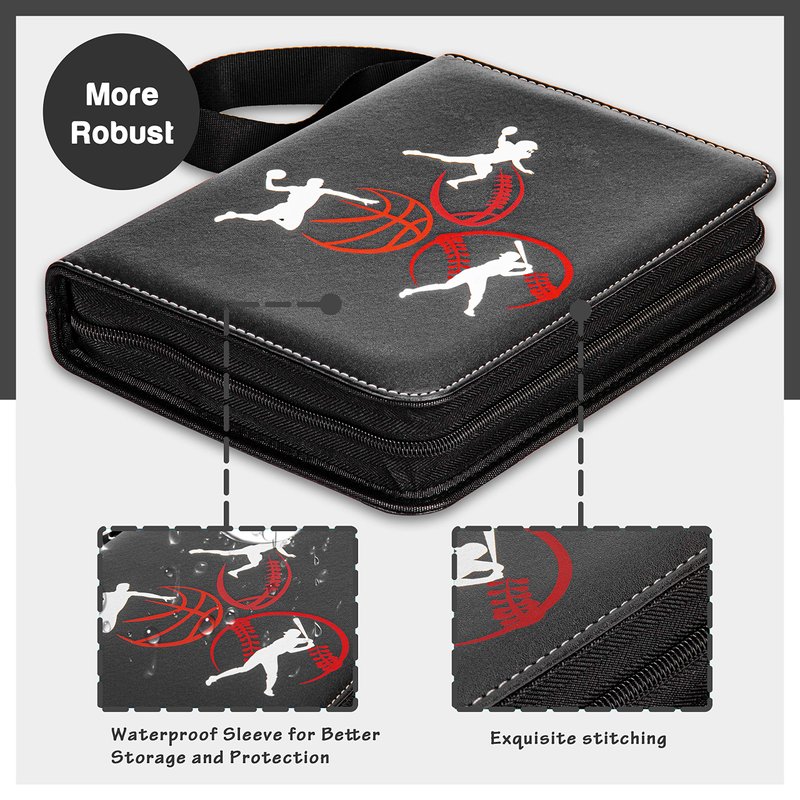 • TOUGH AS YOU ARE💪: The outside of this trading card case is made from durable and waterproof PU material. The card sleeves are made of durable, acid-free, waterproof clear polypropylene. We made this 3 ring sports card binder heavy duty to protect your trading cards from fading and staining.