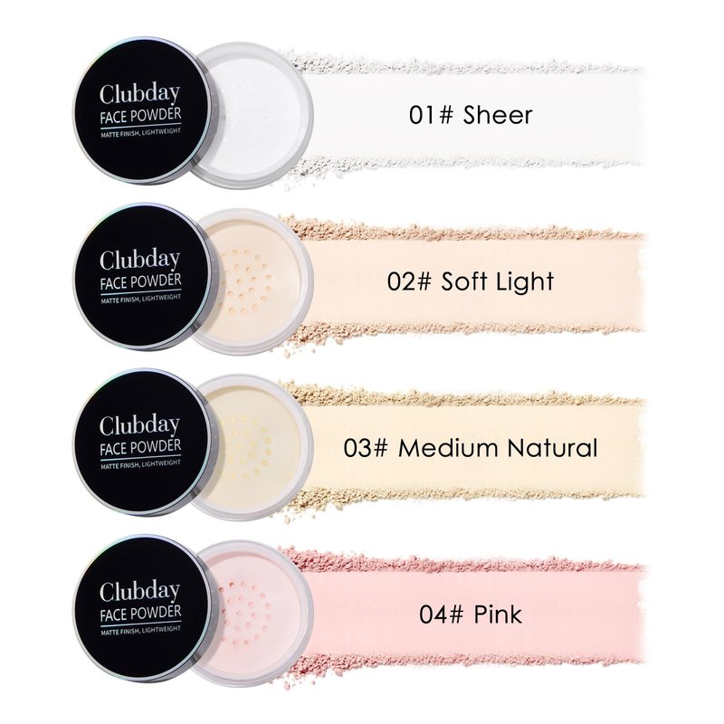- CLUBDAY SKIN-SETTING MAKEUP lOOSE POWDER: Ready, set, selfie—this setting powder ensures you’re always insta-ready by subtly blurring fine lines, pores, and blemishes for a radiant complexion.