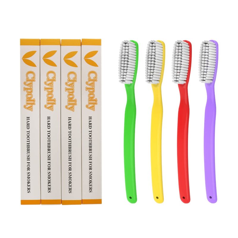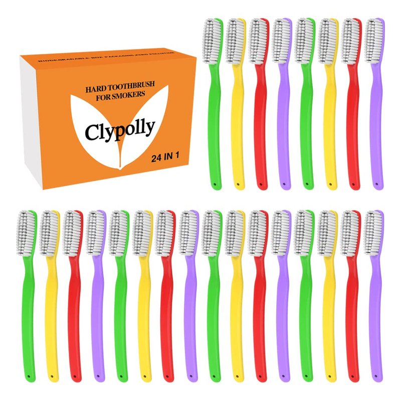 Clypolly Hard & Firm Toothbrush Stiff Bristle Brush for Smokers Oral Care Teeth Whitening Cleaning for Adult Travel Pack of 24