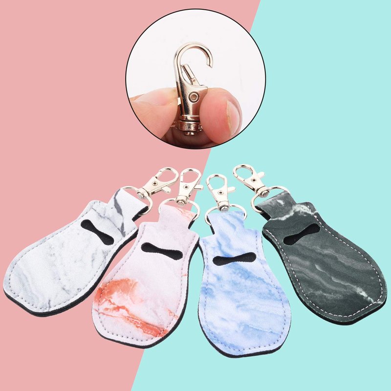 Clip-on Chapstick Sleeve Lip Balm Holder Neoprene Lipstick Holder Keychain Travel Accessories (Marble Patterns (4 Pcs))